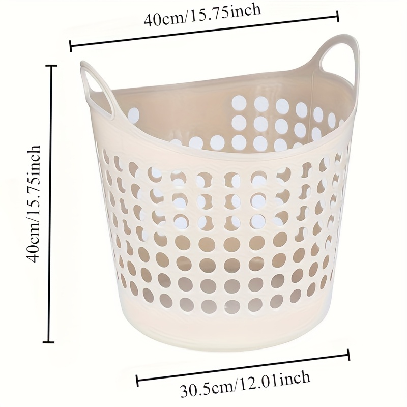TEMU 1개 접이식 플라스틱 세탁 바구니, 손잡이 포함 - 현대적인 둥근 더러운 옷 바구니, 욕실, 침실 및 가정 조직용, 필수 가구품용 다기능 보관함, 세탁실 액세서리, 세탁 바구니