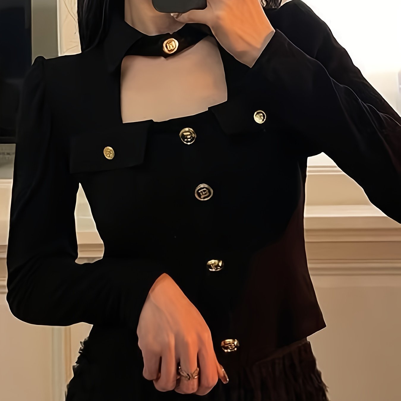 TEMU 여성용 Y2K 블랙 베이스 레이어 탑 - 슬림핏 긴팔 버튼 프론트 드레스 셔츠, 부드러운 중탄성 블라우스, 레이어링용, 세탁기 사용 가능 가을 워드로브 필수 아이템 (논-)