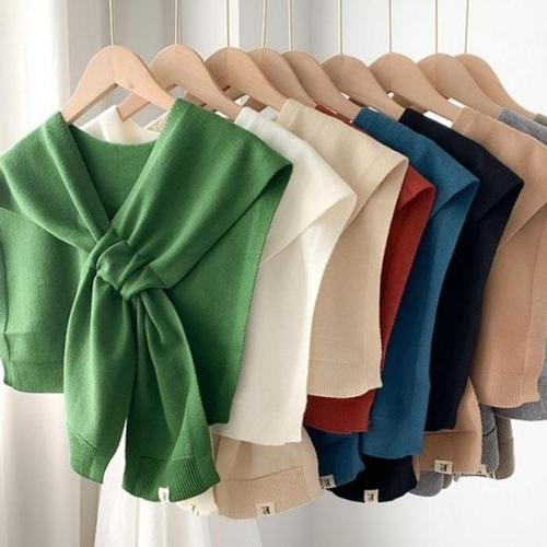 허블리 여성 어깨 숄 가디건 니트 머플러 레이어드