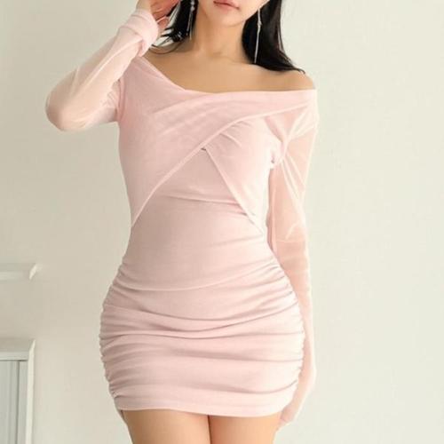 [다잇템]여자 볼드숄더 크로스넥 롱슬리브 미니원피스 (45623071A)