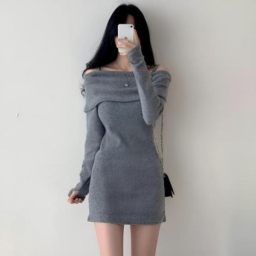 [다잇템]여성 스웨터 쁘띠 귀여운 볼드숄더 원피스 (42512155A)