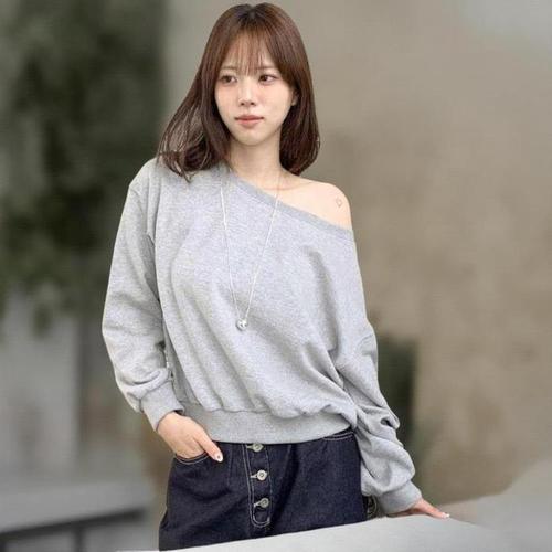 [신상오픈런]여성 오버핏 원오프숄더 면혼합 키치무드 맨투맨 (42613338)
