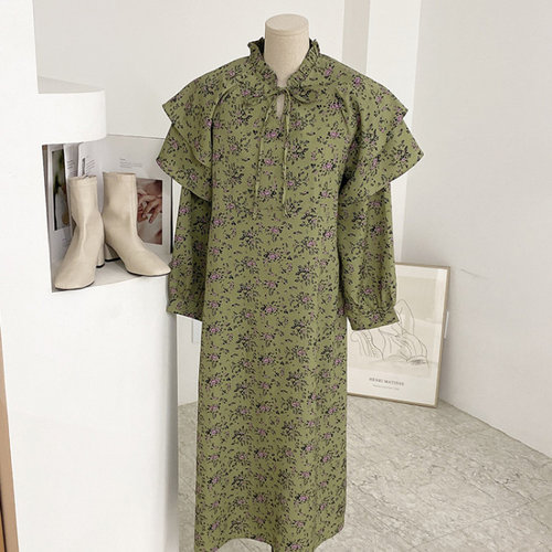 [오조크] 트임 단추 숄더 셔링 와이드 원피스 (K75-51412)