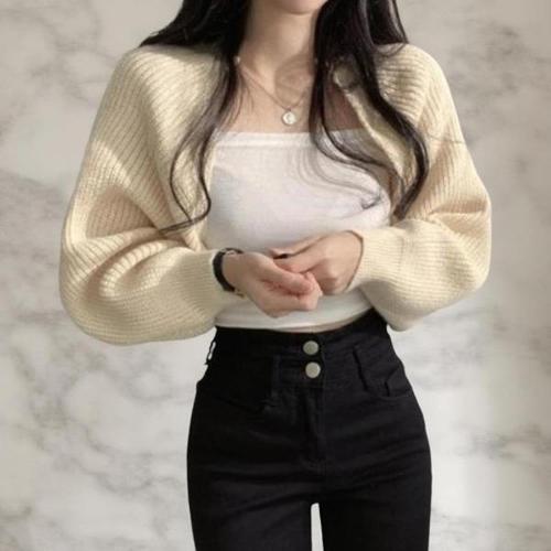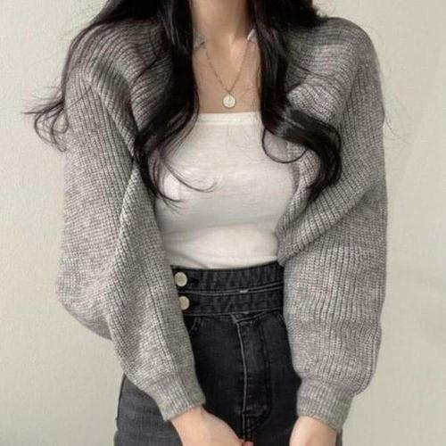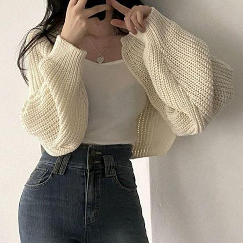 [에이치플러스몰]여성 가을 겨울 데이트룩 니트 볼륨소매 숏 크롭 볼레로 가디건