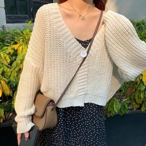 [엄지척]브이넥 크롭 긴팔 가디건 여성 캐시 니트 미니 숏_19806014_667501