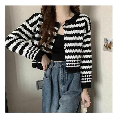 [엄지척]데일리 여성 러블리 스트라이프 니트가디건 가디건 숏_19801640_667501