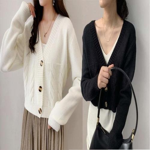 [엄지척]여자 세미 크롭 V넥 넓은 골지 니트 숏 가디건_19806134_667501