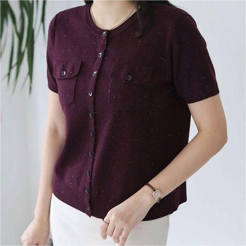 [에이치플러스몰]여성 단정한 버튼 포켓 반팔 라운드넥 가디건 숏 니트 3색