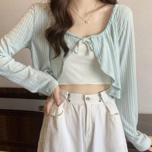 여름 메쉬 볼레로 긴팔 가디건 크롭 블라우스 태양 커버업 원사이즈 국내
