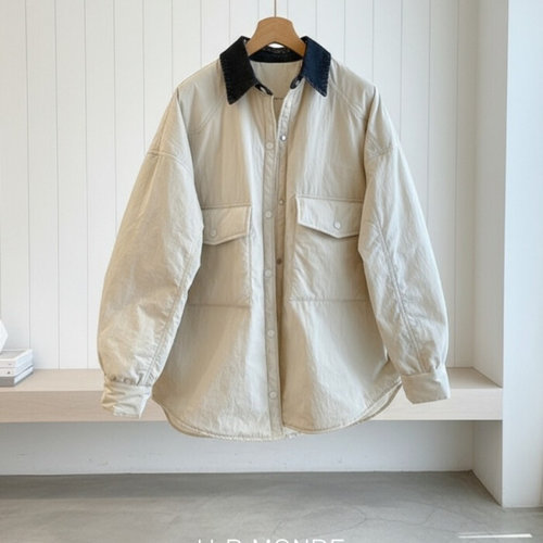 [유아몽드]여성 데님카라 배색 퀄팅 숏패딩 2컬러 캐주얼 오버핏