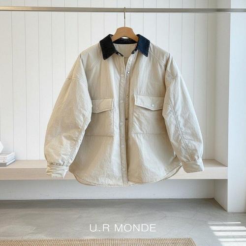 유아몽드 / 여성 데님카라 배색 퀄팅 숏패딩 2컬러 캐주얼 오버핏