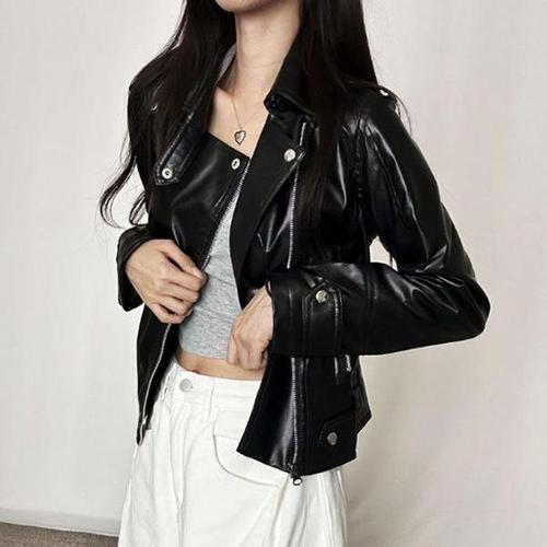 여성 레더 자켓 봄가을 루즈핏 숏 pu 가죽 재킷 빈티지 여자 라이더 자켓 터틀넥 간절기 숏 자켓 CJJ
