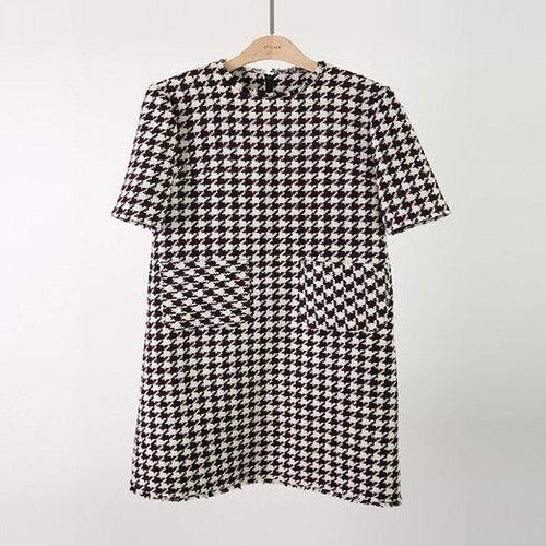 [모노무드]모노무드 여자 반팔 모던룩 밑단 수술 사계절 트위드 원피스