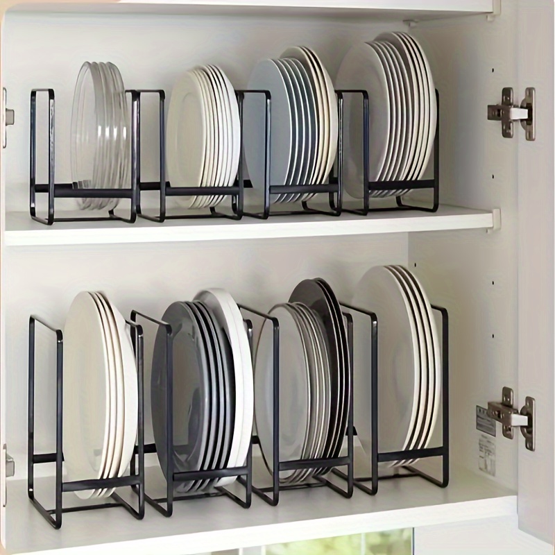 TEMU 4pcs 헤비듀티 금속 주방 캐비닛 식기 건조대 정리대 - 조절 가능한 선반, 공간 절약형 수직 접시 & 그릇 홀더, 블랙 프레임, 접시/식기용, 식기세척기 호환 - 팬트리 & 식기 보관용 (도구 없이 조립 가능)