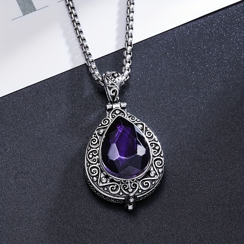 TEMU 열리는 눈물방울 모양의 자수정 목걸이 펜던트, 여성 선물용으로 아름다운 액세서리