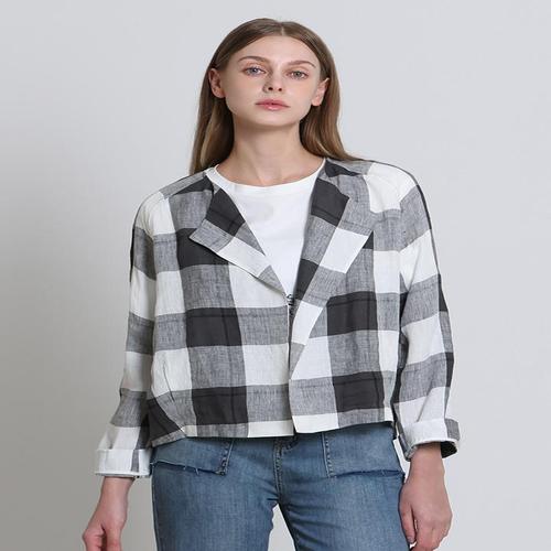 [데일리스트][세정 _인디안여성복]/체크 린넨 자켓MDBFU5M3111_GN_GN
