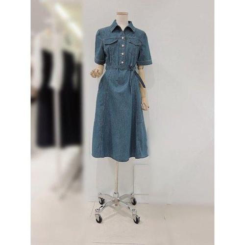 갤러리아_[SOUP] 데님 아웃 포켓 제천벨트 반팔 플레어 원피스 SC5OP33