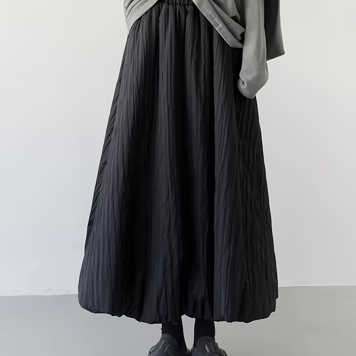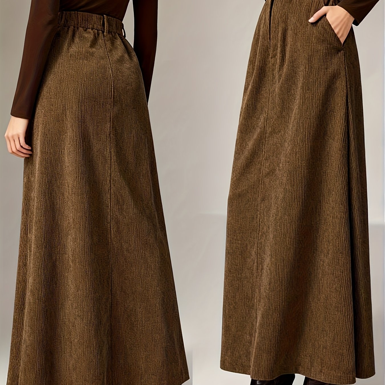 TEMU 여성용 우아한 A라인 맥시 스커트 - 포켓 디자인, 하이웨이스트 겨울용 보온, 플레어 헴 & 수직 텍스처 (논스트레치) - 단색 팬츠 스커트, 가을/겨울용, 핸드워시 가능, 오피스~세미포멀 웨어