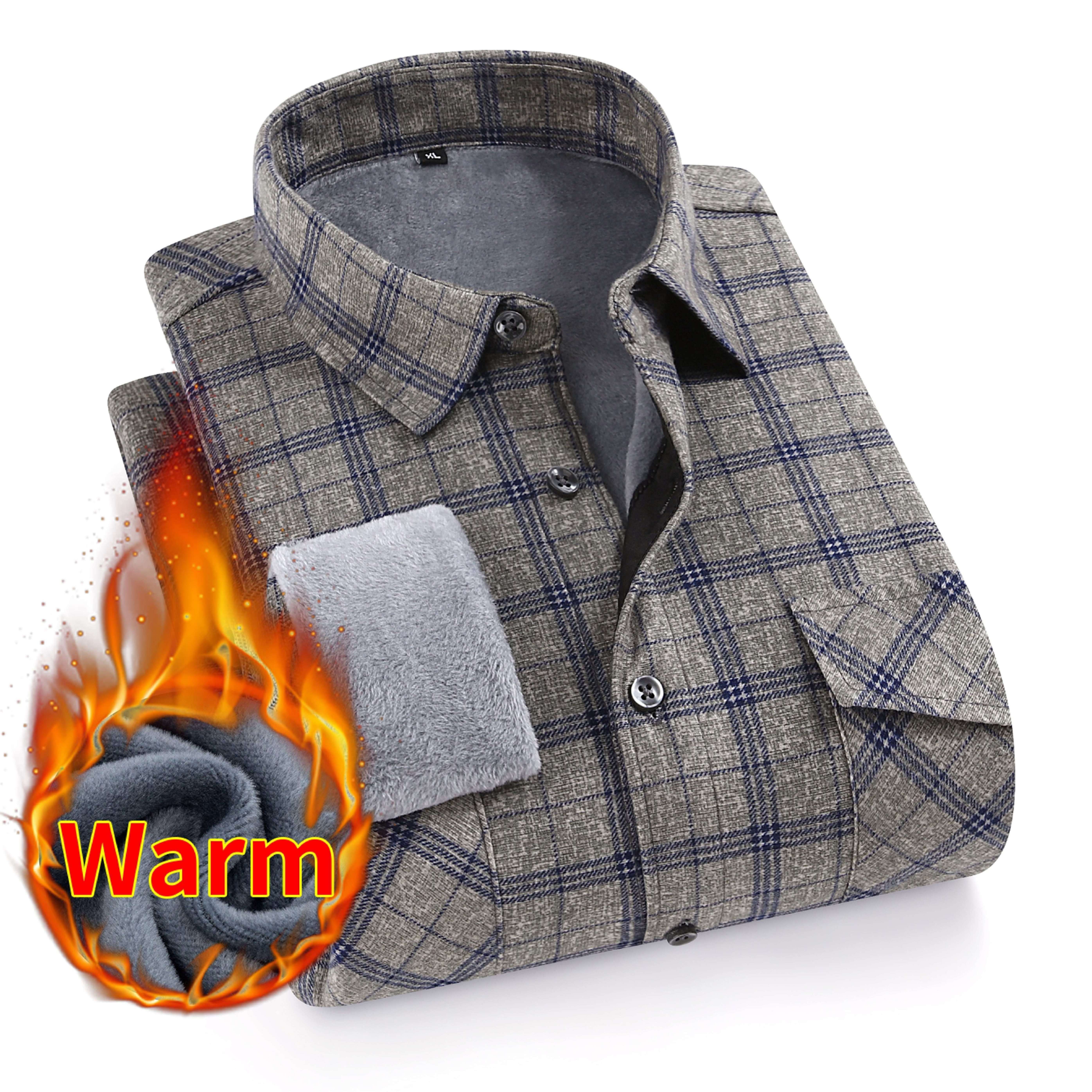 TEMU 남성용 따뜻한 셔츠 재킷 - 두꺼운 버튼업 체크 무늬 정장 코트, 신축성 없는 원단 겨울 아우터, 추운 날씨에 적합, 포멀 및 캐주얼 웨어 - 가을 및 겨울 코트 (레드/블랙/화이트/그레이/블루/베이지) - 간편한 관리 버튼 셔츠 재킷