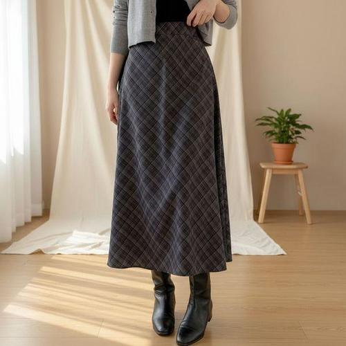 [다잇템]여성 격자 시폰 환절기 롱스커트