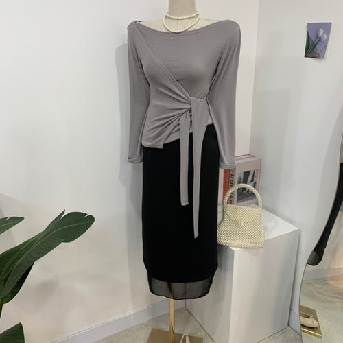 씨샵인더룸 / 토핀 쉬폰 레이어드 뒷트임 롱 스커트 2color
