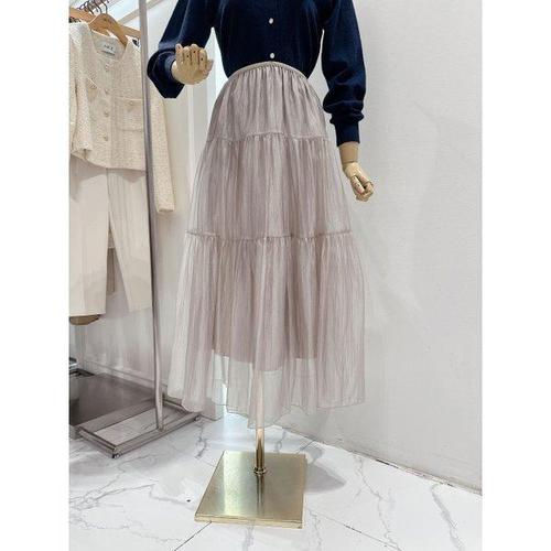 밴딩 샤랄라 디테일 구성 쉬폰 A라인 날씬 스커트 롱