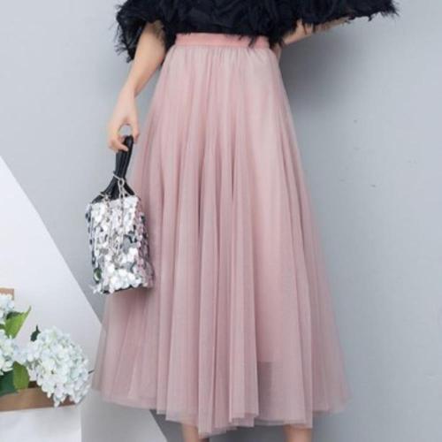 [데일리앤] 스텔라 밴딩 플레어 롱 쉬폰 레이스 망사 샤스커트