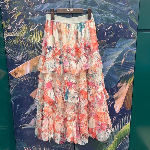 [르니앤맥코이]오렌지플라워프릴쉬폰롱스커트MN05SK701_IC