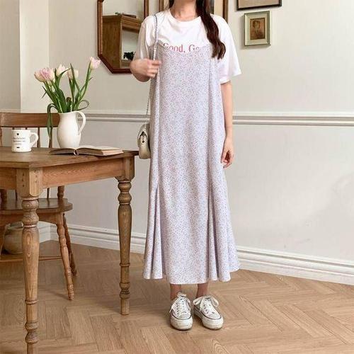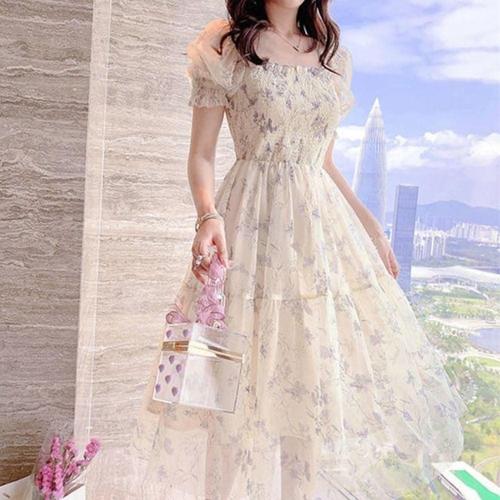 키밍 여름 쉬폰 꽃무늬 원피스 반팔 롱 여성 치마 WED8083