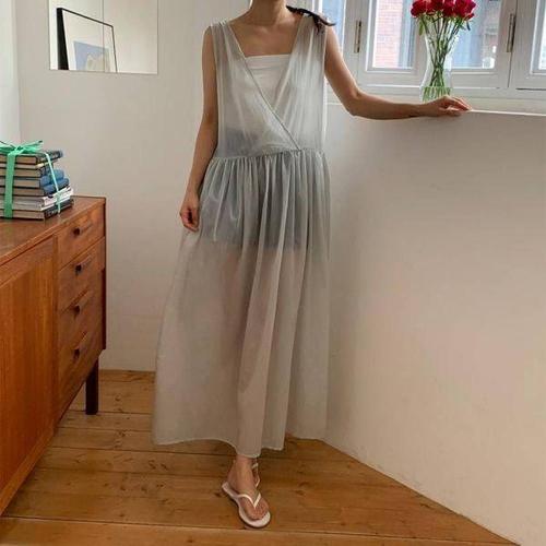 [옷자락]여자 쉬폰 컷아웃 브이넥 홀복 야시 시스루 롱원피스