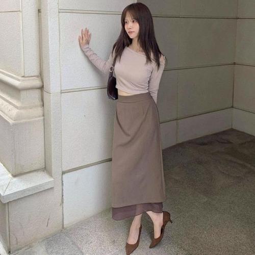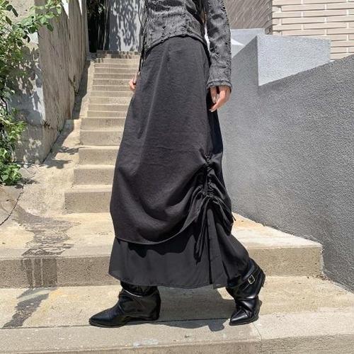 [신상오픈런]여자 힙무드 사이드 스트링 쉬폰 레이어드 롱 스커트