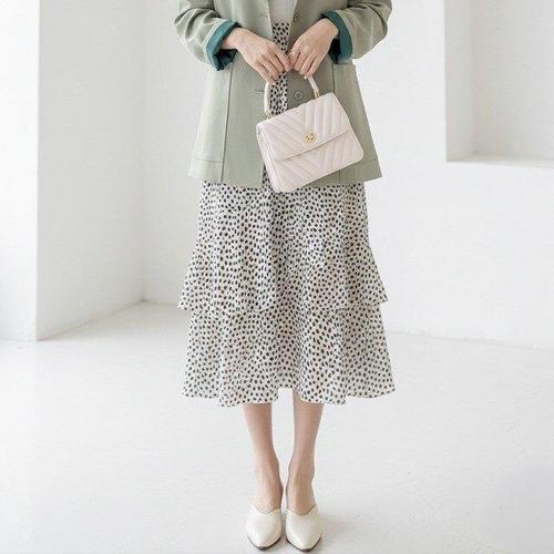 [핑크엘리제]쉬폰 레이어드 도트패턴 미디기장 미엘로아스커트