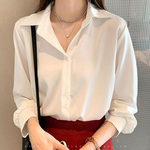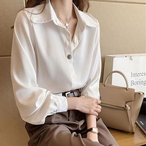 [옷자락]여자 시폰 셋업 블라우스 내의 클래식 카라 셔츠