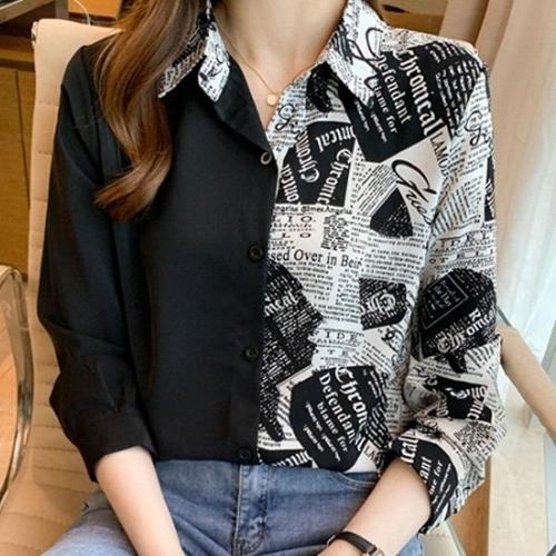 [엄지척]레터링 배색 디자인 여성 셔츠 카라 쉬폰 블라우스_19660347_667501