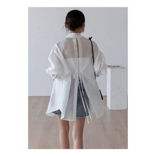 여름 선 스크린 셔츠 우아한 관점 얇은 시폰 블라우스 한국 하라주쿠 루즈 탑 캐주얼 여성 카디건을 통해 볼 수 있습니다.