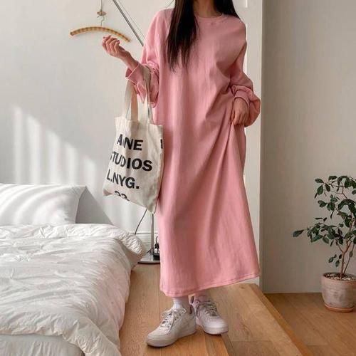[에이치플러스몰]여성 하객 셔츠 온나핏 쉬폰 원피스 루즈핏 트