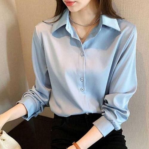 두께 단수 브이넥 정장셔츠 계절 광택 단추 격식 블라우스 쉬폰 모델 가을 오피스룩 하객룩