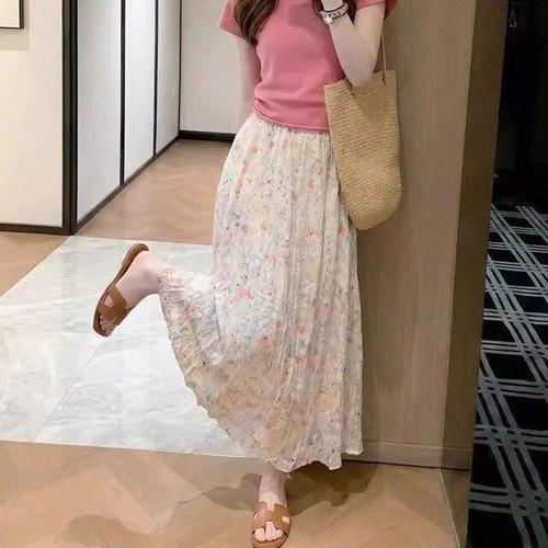하객원피스 투피스같은 일체형 원피스 쉬폰 롱치마 티셔츠