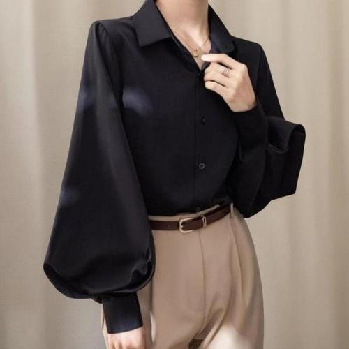 [신상오픈런]여성 사무실 패션 찰랑핏 쉬폰 볼륨소매 긴팔 블라우스