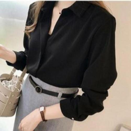 [셀러허브_여성트랜드패션]여성 클래식 사무복 긴팔티 시폰 실크 블라우스
