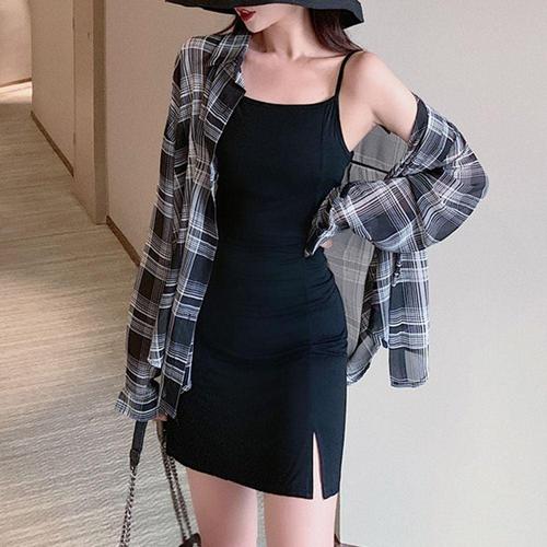 [모노무드]MNO 여름철 비침소재롱티 드레스셔츠 오버핏 쉬폰소재 남방 겹쳐입기 클래식