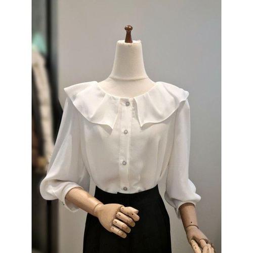 besteffie 시원한 신상 여성용 봄여름 시폰 블라우스 프릴 장식 반팔 티셔츠 하객룩 여자 심플 스타일 오피스룩 K12