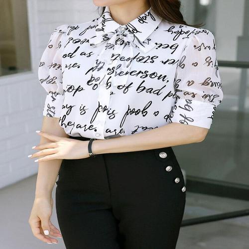 [스타일온미][루이스엔젤] 리에즈 리본타이SET 레터링 쉬폰 배색 블라우스