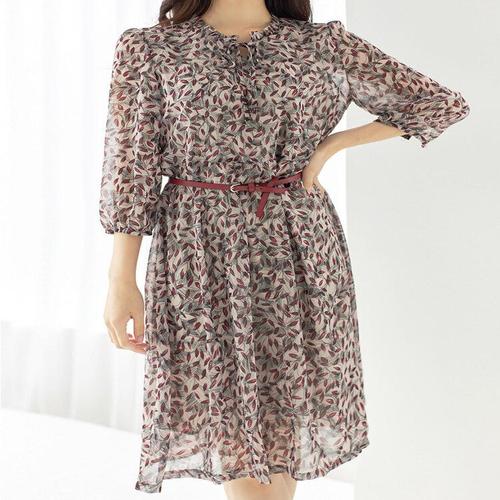 [스타일온미][스타일온미] 레드리프 패턴 벨트SET 쉬폰 플레어 원피스.