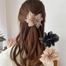 [다잇템] 여자 럭셔리 잔주름 골드바 자동헤어핀 2개 시폰 세트_17020565_588872