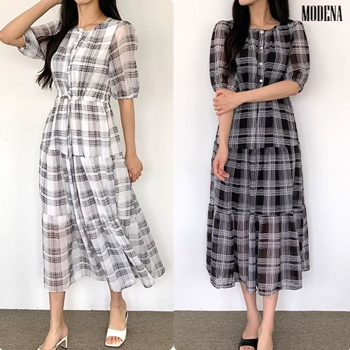 [H2. 모데나] ★여름신상특가★ 체크패턴 쉬폰 티어드 원피스_2컬러