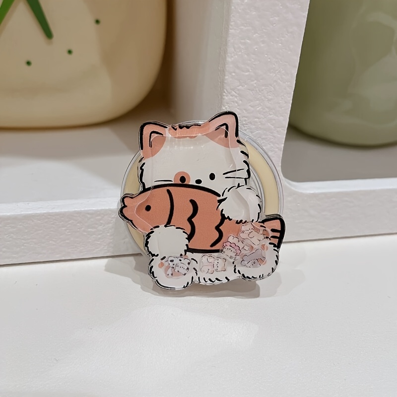 TEMU 고양이가 물고기를 잡고 있는 삽화 마그네틱 스탠드, Apple 14 PLUS/16E 폰 케이스에 적합, 16 PRO MAX/13 PRO/12 Mini 호환, 귀여움, 큰 구멍 XR/11/15에도 맞음, 만화 스타일, 새로운 모델 856