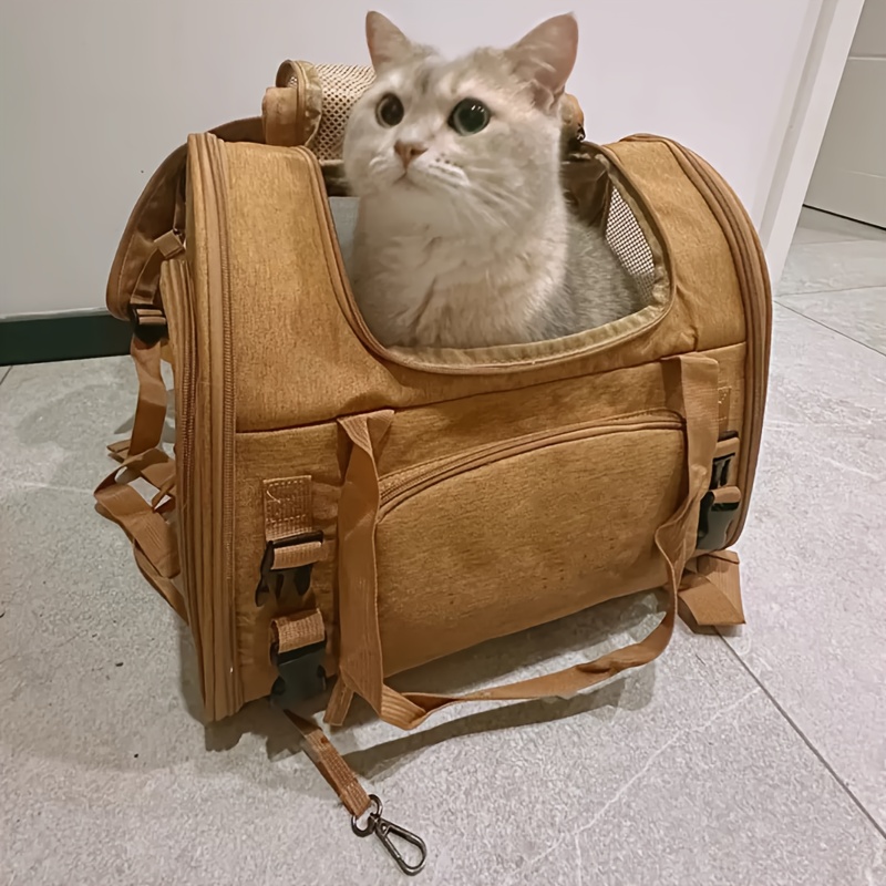 TEMU 확장형 대용량 백팩, 가볍고 내구성 있는 접이식 디자인, 통기성 메쉬 창문 및 확장 기능, 고양이 및 소형 애완동물용 야외 캠핑 여행 백팩