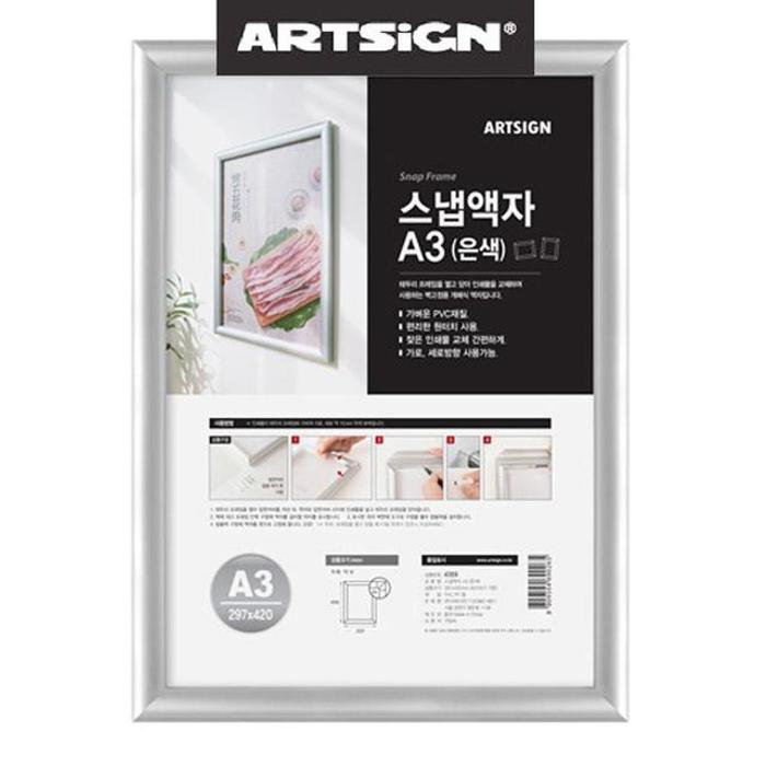 A3 원터치 액자 개폐식 벽부착 은색 스냅사진