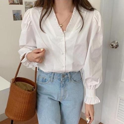 [엄지척]브이넥 스모크밴딩 셔츠 블라우스 어깨셔링 데이트룩_19642771_667501